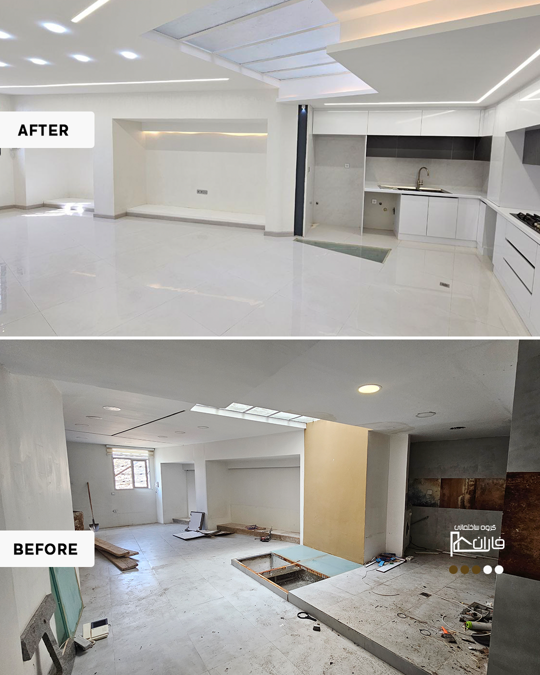 - اجرای صفر تا صد بازسازی(سازه، تاسیسات، نما، طراحی داخلی) با تیم هماهنگ